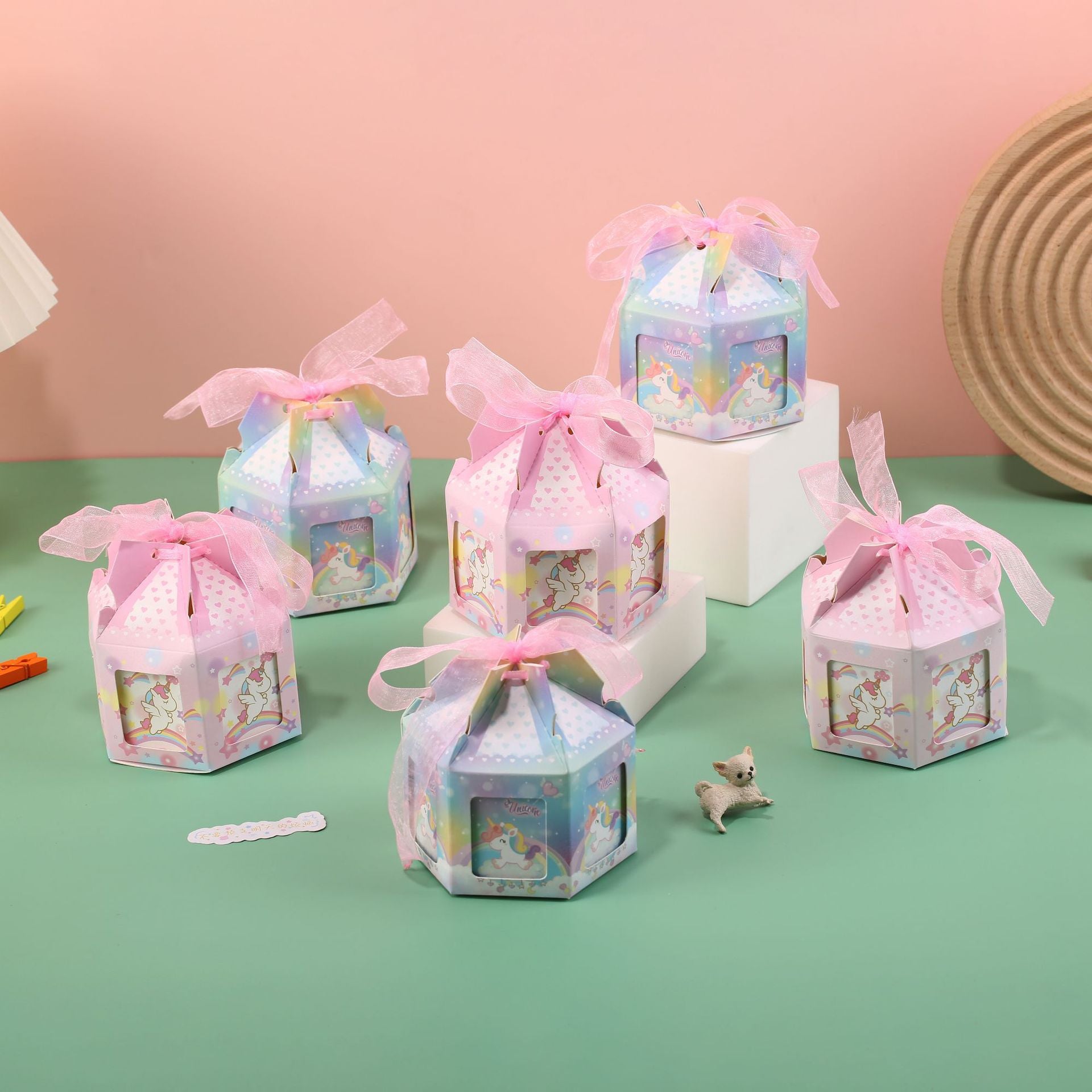 Carousel Octagon Candy Box – Wedding Favor Gift with Ribbon